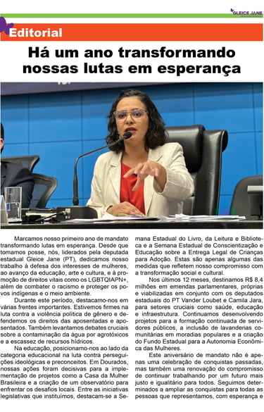 Como deputada estadual de Mato Grosso do Sul, acredito que prestar contas não é apenas uma obrigação, mas um ato de respeito à população que represento. Aqui, você acompanha de perto cada passo do nosso trabalho – porque um mandato transparente é um mandato forte.